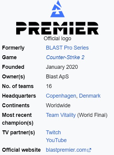 Founded in January 2020 by BLAST ApS (a Denmark-based esports organization) the BLAST Premier tournament quickly became one of the major CS2 events. The idea behind the BLAST Premier was to create a successor to the BLAST Pro Series but in a new format. The first BLAST Premier went down like a treat with Team Vitality lifting the Final trophy. Since 2020, the CS2 BLAST Premier has gained scale and prestige with events across the continents: Europe, North America, and now Asia.