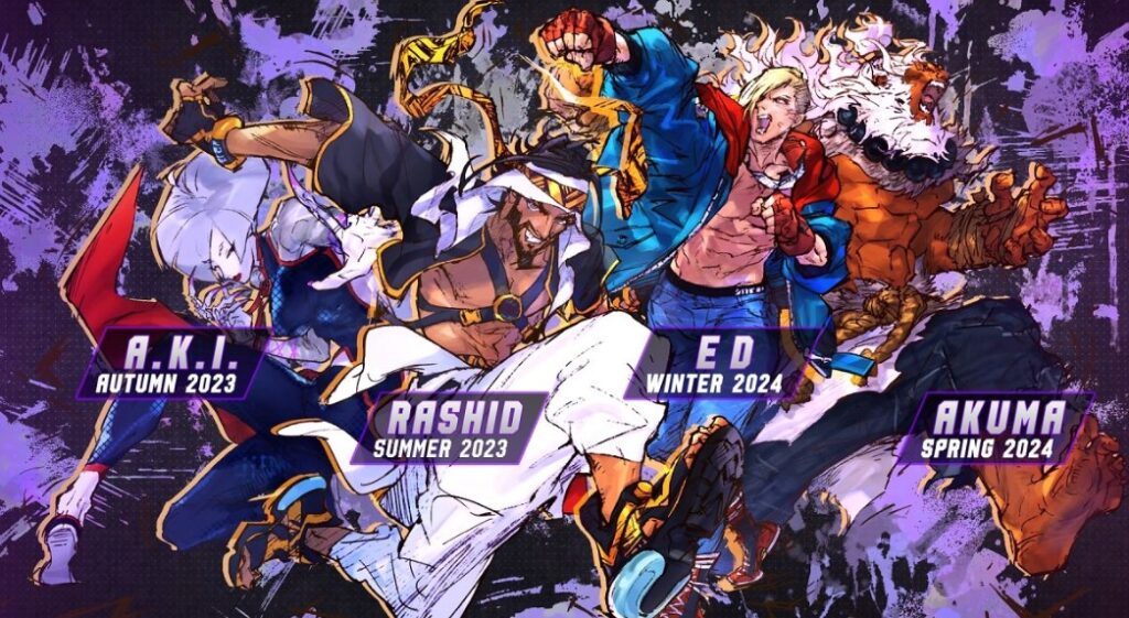 - Terry (Season 2 DLC – Fall 2024) is another iconic fighter with moves like Rising Tackle and Power Wave;